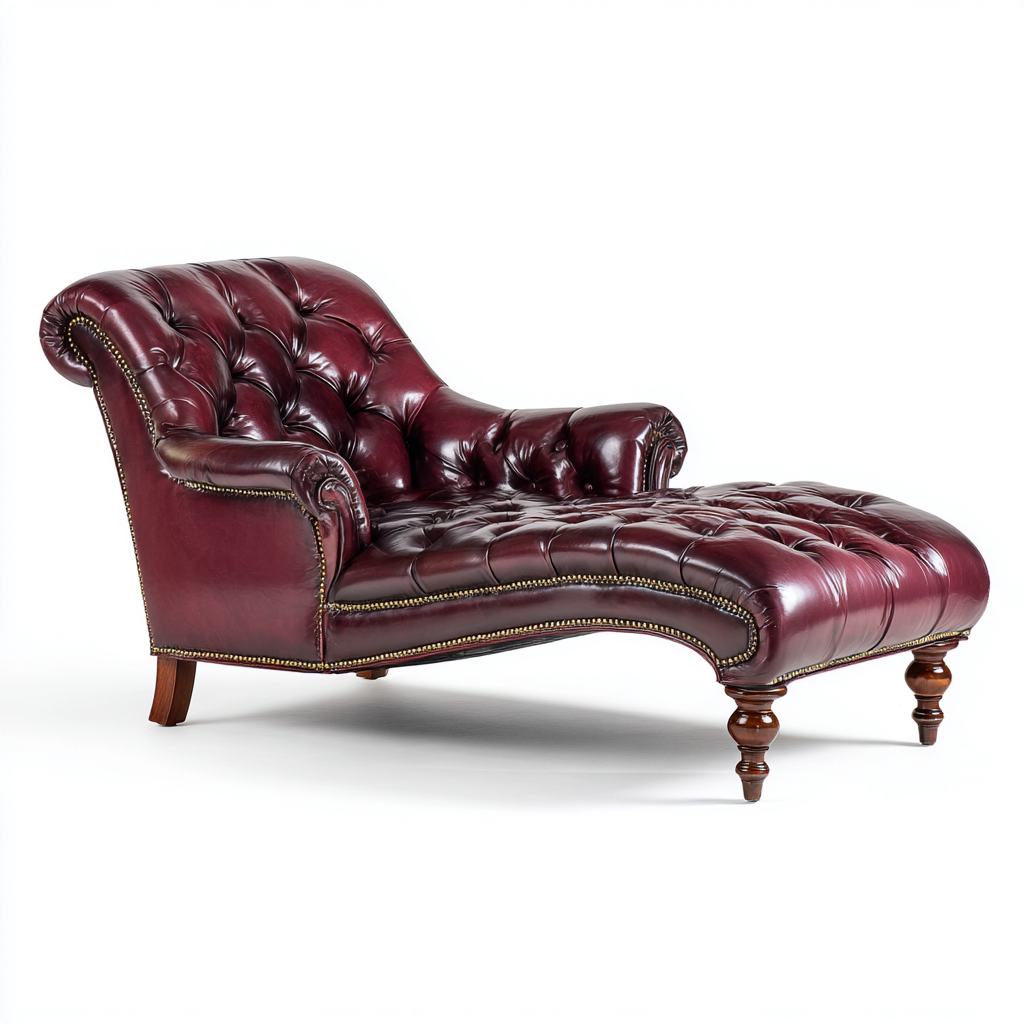 Chaise longue cuir 180x70x88 cm rouge bordeaux style classique