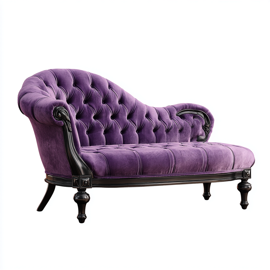 Cette chaise longue en velours violet se distingue par son esthétique classique et raffinée. Son dossier capitonné et ses courbes élégantes créent une pièce sophistiquée, idéale pour apporter une touche de caractère à un salon ou une chambre.