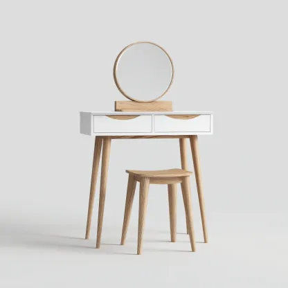 Cette coiffeuse avec miroir est concue pour un usage quotidien dans la chambre ou le dressing. Son style epure associe une surface fonctionnelle et une silhouette legere offrant un espace confortable pour les routines de maquillage et de soins personnels.