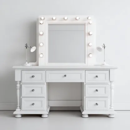 Coiffeuse panneau 140x50x160 cm - blanc - design classique avec miroir lumineux pour chambre