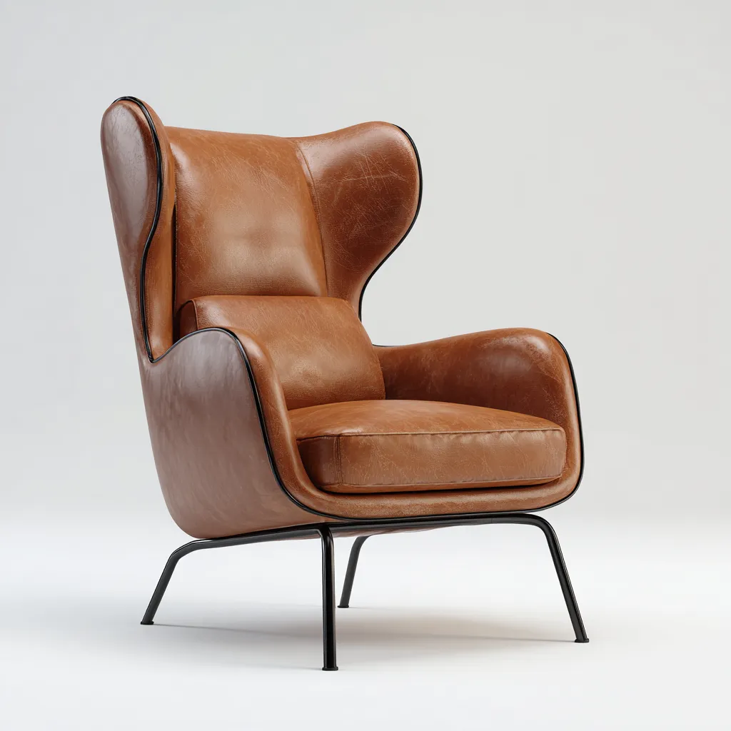Fauteuil cuir métal 82x85x95 cm - Marron - Assise confortable design classique