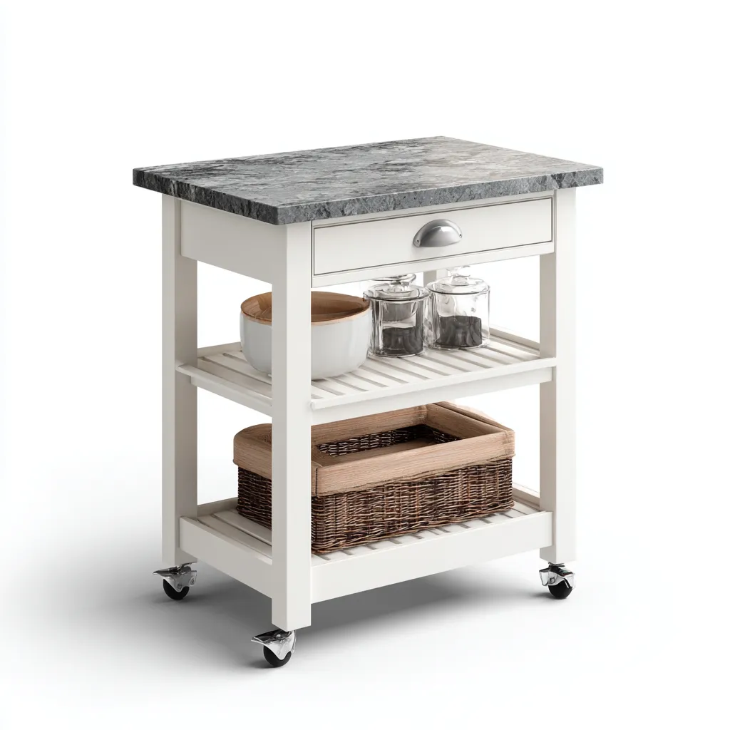 Îlot de cuisine bois et pierre 75x45x88 cm blanc et gris design pratique
