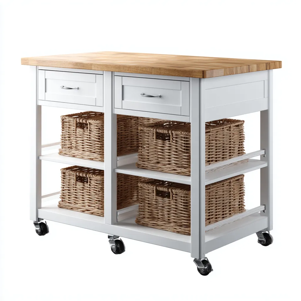 Îlot de cuisine en bois avec plateau 110x55x90 cm - blanc et bois naturel - style campagne moderne