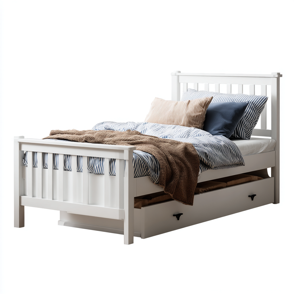 Lit simple en bois avec tiroir 200x90x95 cm - blanc - design classique pour chambre