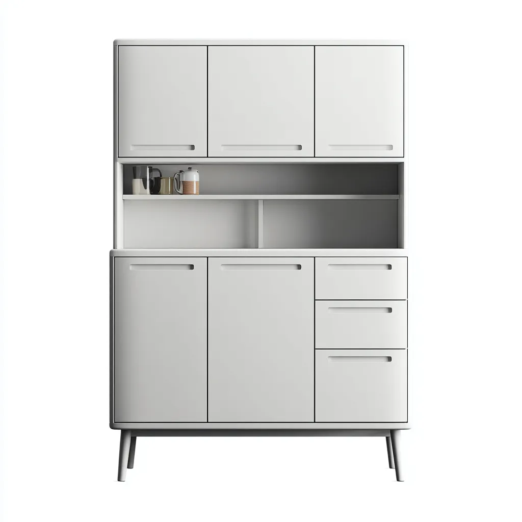 Structure fabriquee en panneaux MDF avec finition blanche. Les surfaces sont lisses et adaptees a une utilisation reguliere dans l environnement de la cuisine.