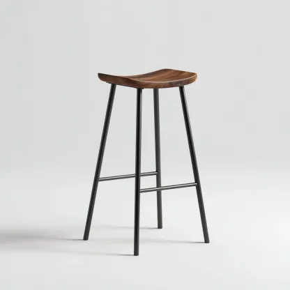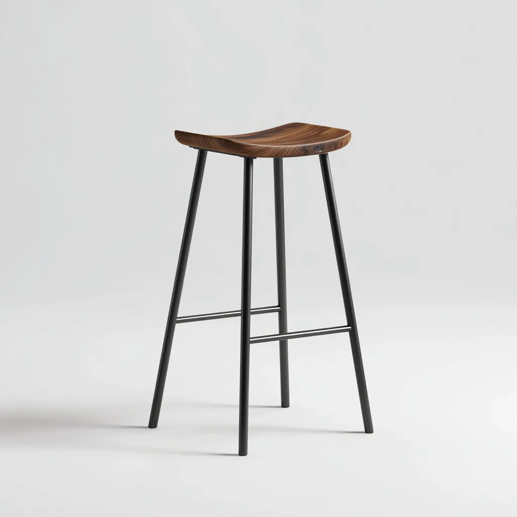 Tabouret de bar en métal et bois 45x45x75 cm - noir et bois naturel - style moderne