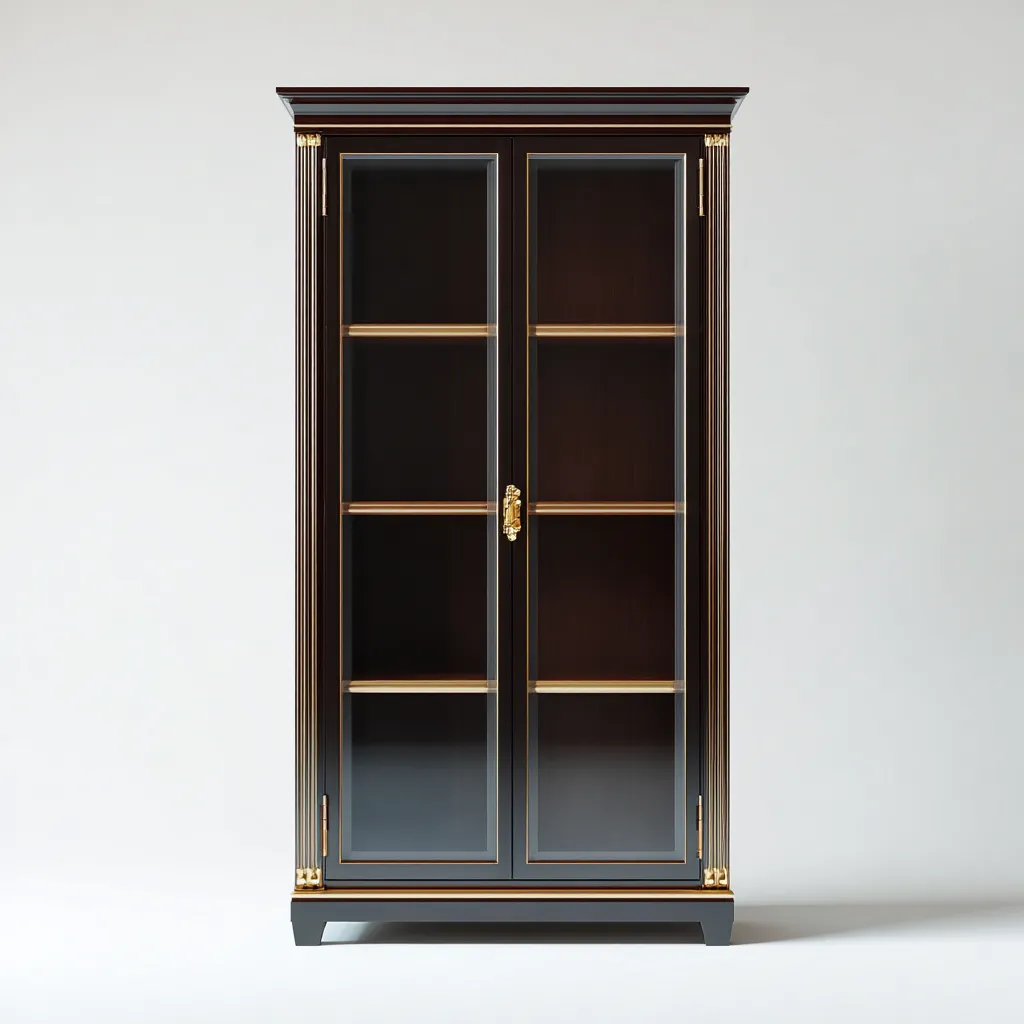 Vitrine en bois et verre 90x40x190 cm - noir-doré - design classique pour salon